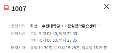 기점행 : 첫차 : 04:40 막차 : 22:00
