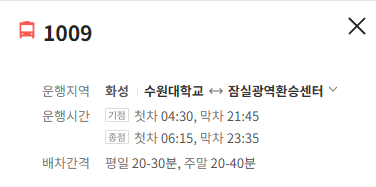 화성 1009번 버스 배차간격