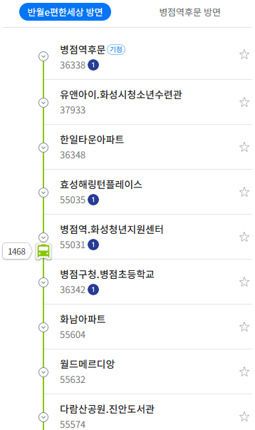 전철 1호선 직결: 병점역후문과 병점사거리.병점역입구를 모두 경유하여 출퇴근 시간대 지하철 환승이 매우 편리합니다.