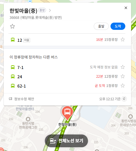 주요 버스정류장 한빛마을(중) 위치 알아보기