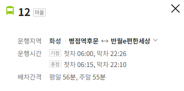 화성 12번 버스 운행노선 병점역후문→유앤아이.화성시청소년수련관→한일타운아파트→효성해링턴플레이스→병점역.화성청년지원센터→병점구청.병점초등학교→화남아파트→월드메르디앙→다람산공원.진안도서관→미득골마을→진안초교→중심상가사거리→롯데시네마→주공11단지.우남퍼스트빌2차→주공7.8단지→신미주아파트.주공6단지→신미주→경남아너스빌→동탄3동행정복지센터→미즈파크병원→능동은행사거리.동탄시티병원→센트럴파크→금호어울림→한빛마을(중)→예당마을.롯데캐슬(중)→한림대병원(중)→IT단지(중)→삼성반도체후문→신동탄롯데캐슬→반월e편한세상→반월초등학교→삼성반도체→신동탄롯데캐슬→삼성반도체후문→IT단지(중)→한림대병원(중)→동탄이마트.한림대병원→예당마을.롯데캐슬(중)→한빛마을.석우중학교(중)→한화꿈에그린아파트→센트럴파크→능동은행사거리.동탄시티병원→미즈파크병원→크리스찬교회→이지더원→신미주아파트앞→주공8단지→주공10.11단지→중심상가→롯데시네마→중심상가사거리→진안초교→미득골마을→진안도서관.다람산공원→월드메르디앙→화남아파트→병점사거리.병점역입구→병점역.화성청년지원센터→화성보건소→홈플러스→한일타운아파트→유앤아이.화성시청소년수련관→병점역후문