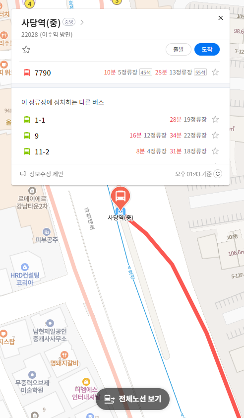 마지막 정류장 사당역(중) 위치 알아보기