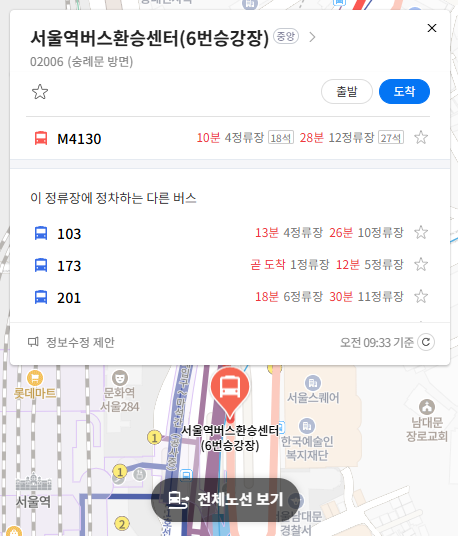 마지막 정류장 서울역버스환승센터(6번승강장)(중) 위치 알아보기