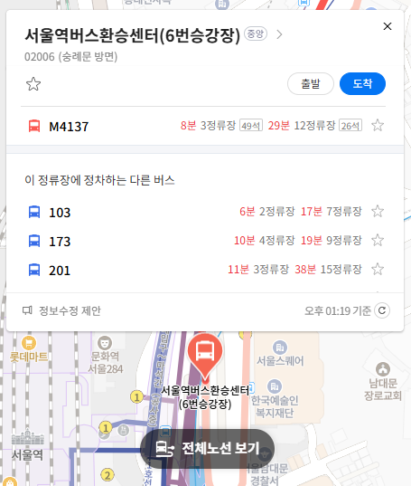 마지막 정류장 서울역버스환승센터(6번승강장)(중) 위치 알아보기