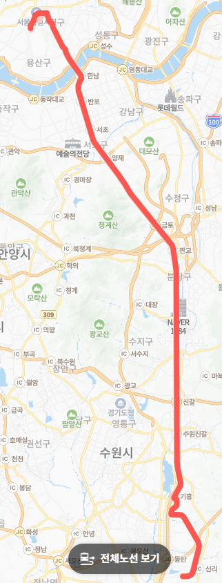 ● 빠른 이동 시간: 광역급행버스(M버스) 특성상 고속도로(경부고속도로, 남산1호터널 등)를 경유하여 일반 시내버스보다 훨씬 빠르게 목적지에 도달할 수 있습니다. 동탄테크노밸리 이후로는 서울 도심 진입 전까지 무정차 운행합니다.