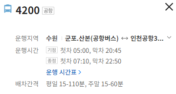 4200번 공항버스 시간표 및 배차간격