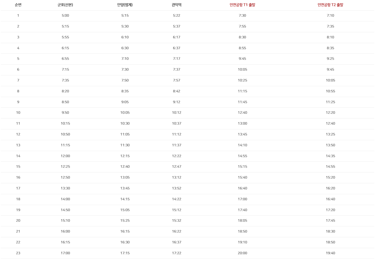 1. 안양, 군포, 의왕 지역에서 인천공항 직통: